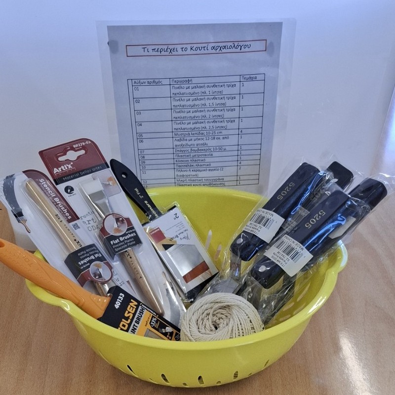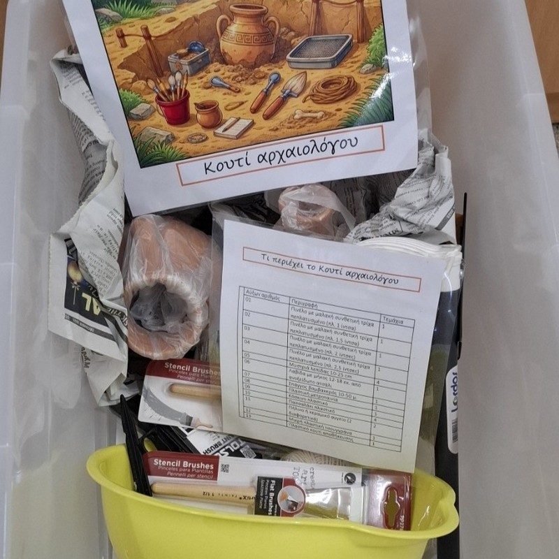 Tο εκπαιδευτικό υλικό «Κουτί Αρχαιολόγου» είναι σχεδιασμένο ειδικά για μαθητές/μαθήτριες του Δημοτικού Σχολείου. Στόχος του υλικού είναι να υποστηρίξει τη διδασκαλία του μαθήματος της Ιστορίας, δίνοντας τη δυνατότητα στα παιδιά να κατανοήσουν τον τρόπο εργασίας των αρχαιολόγων, μέσω βιωματικών δραστηριοτήτων εντός ή εκτός της τάξης. Το υλικό περιλαμβάνει βασικό εξοπλισμό, κατάλληλο και ασφαλή για χρήση από παιδιά, που προσομοιάζει με εργαλεία αρχαιολογικής έρευνας.